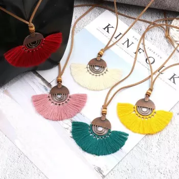 Boho Tassel Necklace – 9 Color Ethnic Long Leather Sweater Chain