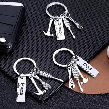 Classic Stainless Steel Tool Keychain – Hammer, Wrench, Screwdriver, Ruler