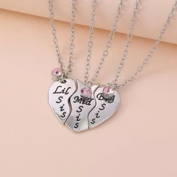Heart Puzzle Sister Pendant Necklace Set with Pink Crystal