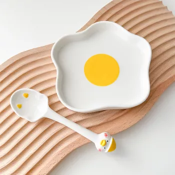 Cartoon Hand-Painted Ceramic Poached Egg Plate