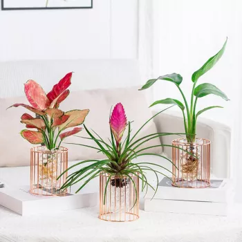 Modern Geometric Metal Plant Holder Vase – Elegant Hydroponic Flower Terrarium