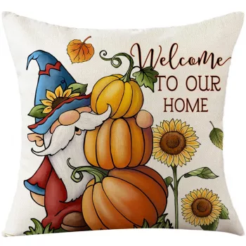 Thanksgiving Maple Leaves and Pumpkin Printed Decorative Pillow Cover
